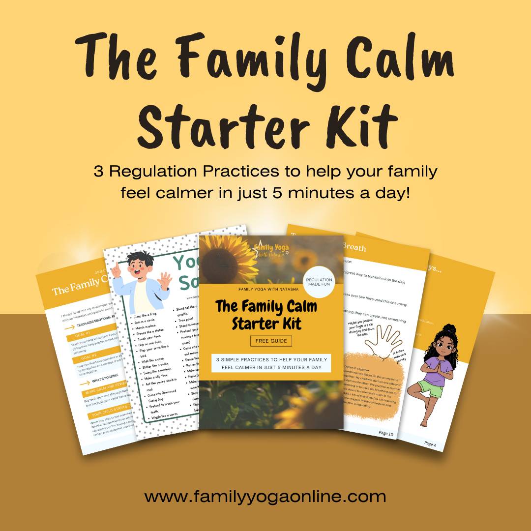 3 Days, 3 Simple (yet powerful) regulation practices to share with your child. Breath, play, and relaxation. Helping your family build a family yoga practice that is supportive, reduces overwhelm and helps build important regulation skills.